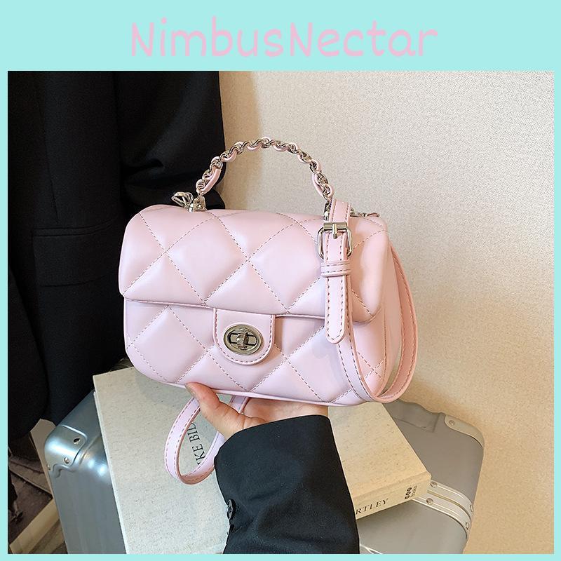 This petite fashion handbag features a stylish quilted pattern, chain strap, and a secure lock closure, offering a versatile accessory for daily wear. Crafted from durable PU material, with a soft yet supportive structure. Ideal for urban outings, it includes an interior zipper pocket and a simple slip pocket for essentials. Users can maintain its appearance by wiping it clean with a damp cloth.