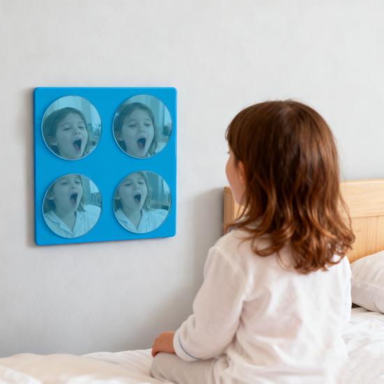 Ideal für Sinnesräume: Dieser interaktive Wandspiegel verwandelt jedes Kinderzimmer, jeden Sinnesraum oder jede Kindertagesstätte in eine anregende Lernumgebung. Es unterstützt die visuelle Verarbeitung und die taktile Erkundung und ist somit eine wertvolle Ergänzung für Räume, die die frühkindliche Entwicklung durch spielerische und lehrreiche Sinneserfahrungen fördern sollen.