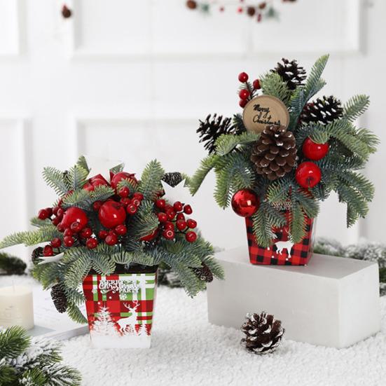 Yousheng Desktop Weihnachtsbaum Mini Künstliche Tannenzapfen Rote Beeren Deko Festlicher Topf Display für Zuhause Und Party Szenen