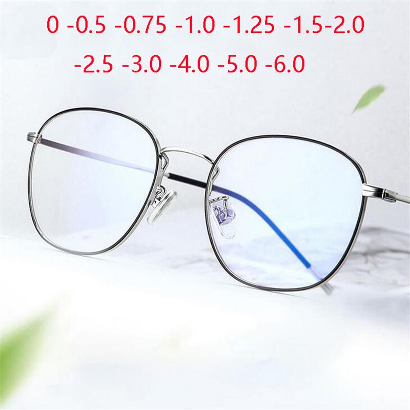 Metal Anti-Blue Light Computer Glasses Women Men 1.56 Aspherical Myopia Lens Prescription Eyeglasses 0 -0.5 -0.75 -1.0 To -6.0