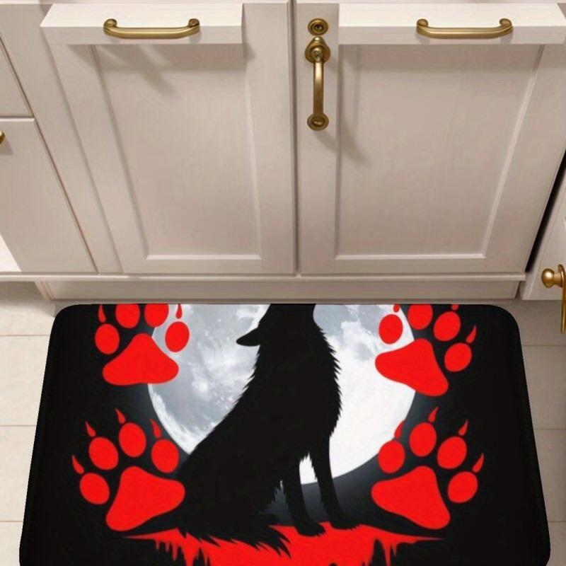1 Stück Wolf Küchenteppich Rutschfeste Fußmatten Pop-Design Badezimmerteppich Badematte Teppich für Zuhause Spüle Wäsche Dekor