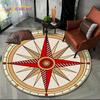3D Retro Kompass Serie Kreis Teppich,Runder Teppich für Wohnzimmer Schlafzimmer Sofa Fußmatte Dekor Rutschfeste Bodenmatte Geschenk