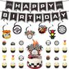 Kindergeburtstagsfeier Arrangement Dekoration Rennsport-Thema Schwarz und Rot Flagge Kuchenstecker Waben