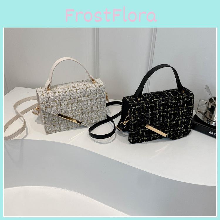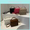 Simple Plaid Woven Texture Diagonal Buckle Women Small Square Bag Casual For