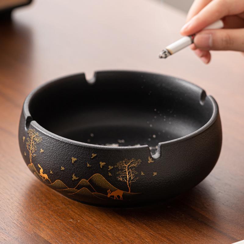 Retro Chinese-Style Large Windproof Ashtray - Coarse Pottery Design, High-End Luxury Cigarette Holder for Home & Office
