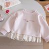 Kinder-Sweatshirt im Prinzessinnen-Stil mit Spitzenbesatz - Frühling/Herbst 2025, Einfarbig, Rundhalsausschnitt