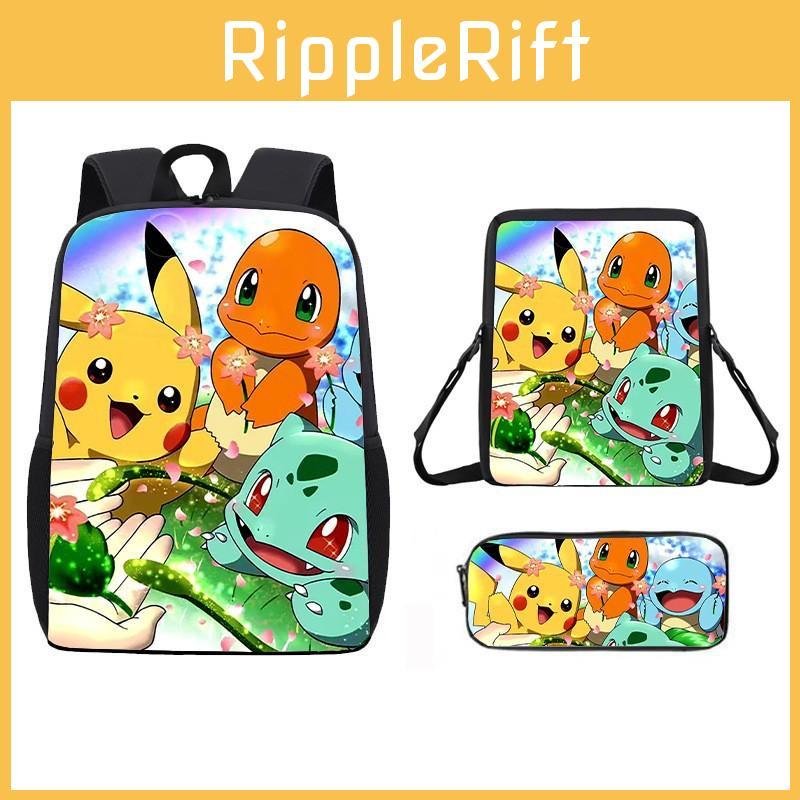 Backpack Pattern Pikachu Shoulder Bag Pencil Case Three Piece Set