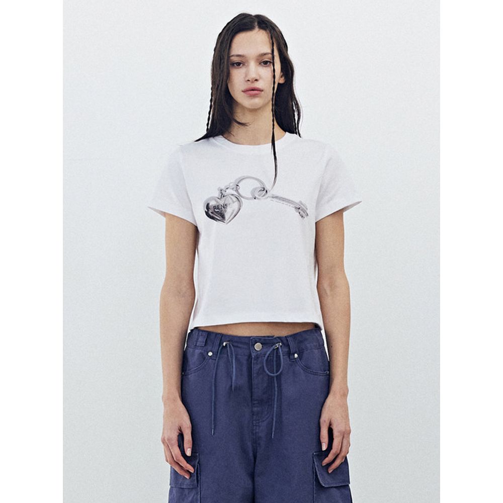 RENSE Silver Heart Keyring T-Shirt White
