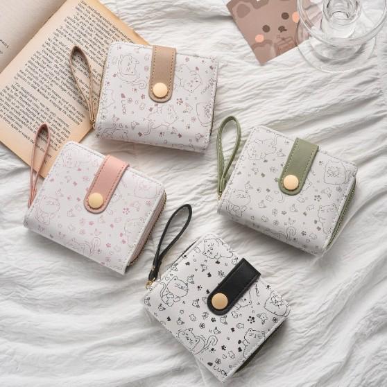 Japanische Niedliche Kätzchen Damen Kurze Geldbörse mit Reißverschluss Münzfach und Kartenhalter