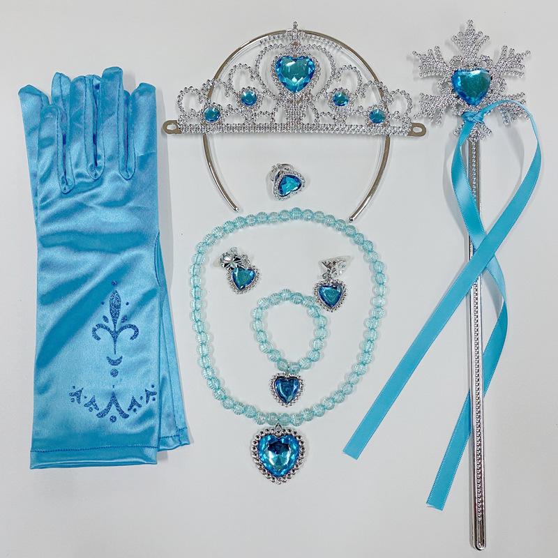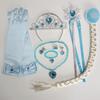 Kostümset zum Thema Die Eiskönigin: Krone, Zauberstab, Zöpfe, Halskette, Ohrringe und Handschuhe für Weihnachten & Halloween