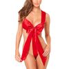 European & American Erotic Christmas Red Backless Lingerie Set with Big Bow