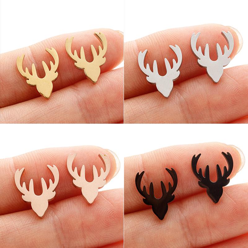 Ohrstecker aus Edelstahl im koreanischen Stil mit Elchgeweih - Weihnachts-Mode Mini-Ohrringe