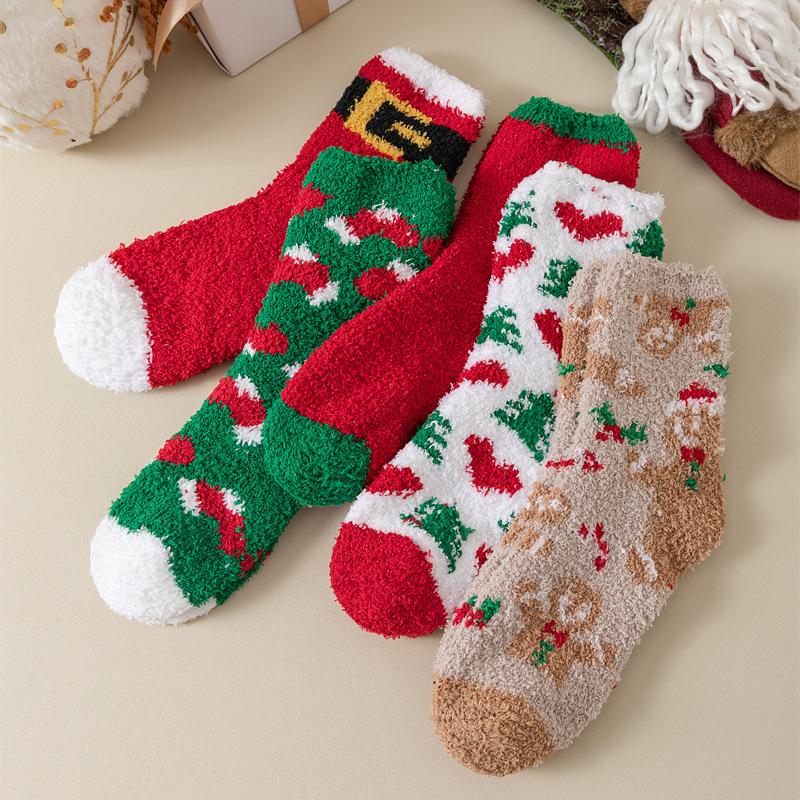 Damen Winter Korallfleece Mid-Calf Socken - Weihnachtsmann & Rentier Design