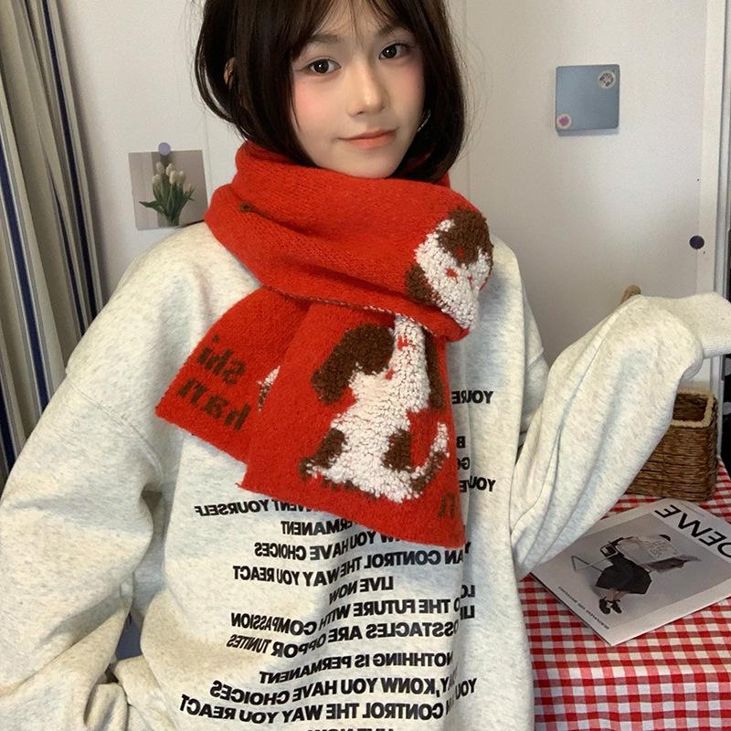 Women's Fluffy Knitted Puppy Scarf - Cozy Wool for Autumn & Winter