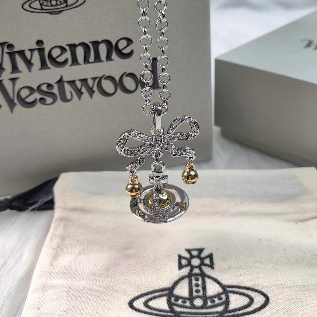 Kaiserinwitwe Cixi Silberne Weihnachtsklingel Brosche & Halskette mit Saturn-Schleife - Eleganter High-End Schmuck für Damen
