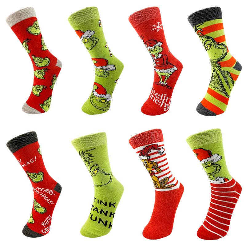Grenzüberschreitende kreative Grinch Weihnachten gestrickte Mid-Calf-Socken für Männer & Frauen.