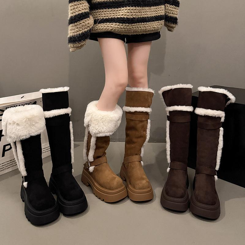 Damen weich elastisch hoch dicke Sohle Winterfell ein warm kalt gefütterte Schneestiefel rutschfest tragen lässig Sport lang Baumwollstiefel