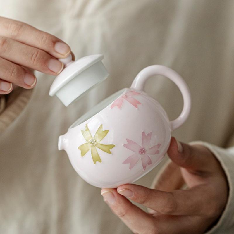 Handbemalte Unterglasur Rosa Sakura Xishi Teekanne Luxus Keramik Teeset für den Heimgebrauch