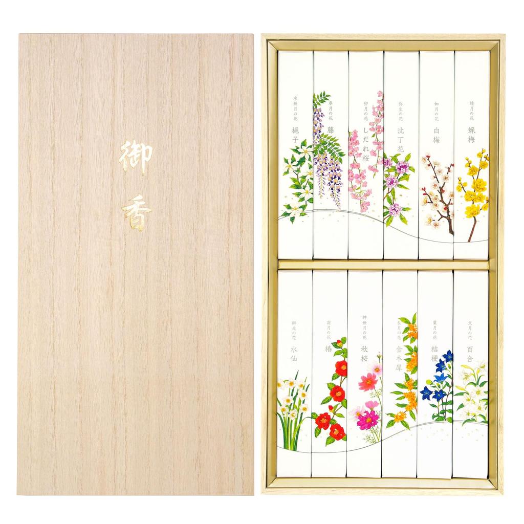 Kameyama Meiko Mondblume (Mondblume) - 12-Sorten-Blumenduft-Auswahl in Paulownia-Holzbox, Perfekt als Geschenk oder Mitbringsel