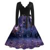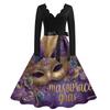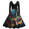 Damen Casual Mode V-Ausschnitt Karneval Bedrucktes Vintage Kleid