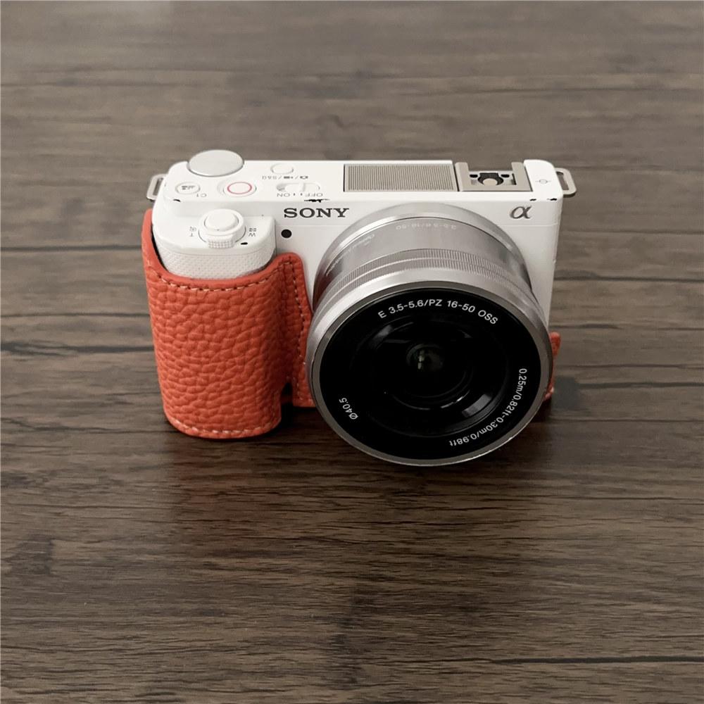 Handgefertigte PU-Leder Kamera Halbtasche für Sony ZV-E10 ZVE10 mit Bodenöffnung Körperabdeckung