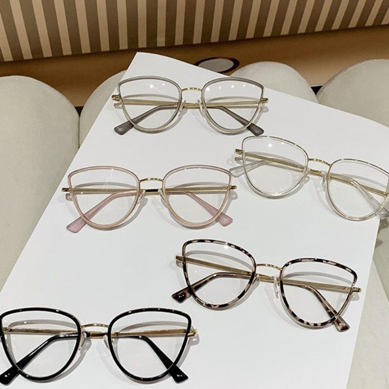Metal Cat Eye Anti Radiation Glasses for Women Men Eyeglasses Frames Transition Shade Replaceable Lens