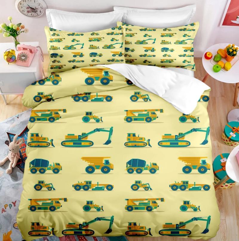 3D Print Excavator, Engineering Vehicle Bedding Set Kids Teenagers Winter Duvet Cover Set Bedroom Bed Linens Boys High-Quality