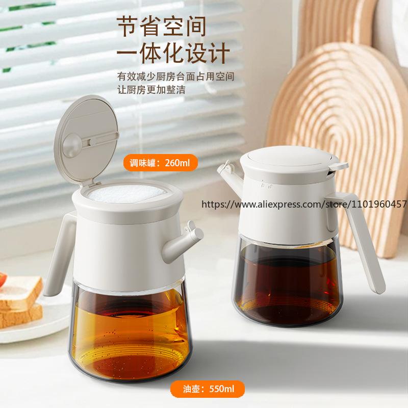 Lebensmittelechter Küchenölspender Set Tropffreie Flaschen Salzgefäße für Öl, Sojasauce Essig Gewürzaufbewahrung