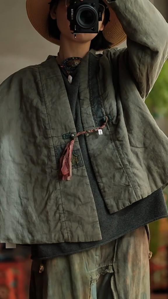 Johnature Vintage Women Patchwork V-Neck Long Sleeve Coats Autumn Single Button Coats