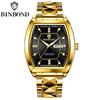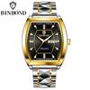 BINBOND Tonneau Zifferblatt Quarzuhren für Herren Luxus Diamant Elegant Edelstahl Wasserdicht Leuchtend TOP Marke Herren Armbanduhr