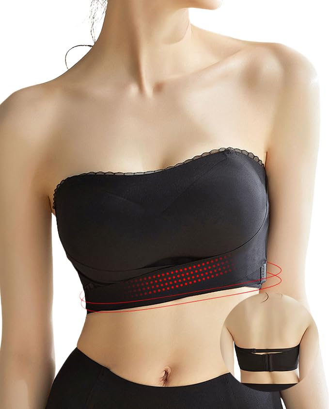 Veimia Strapless Bra Stays in Place Even When with Detachable Shoulder High Tube High Perfect for Bust Enhancement [Stability & Jumping] Straps,