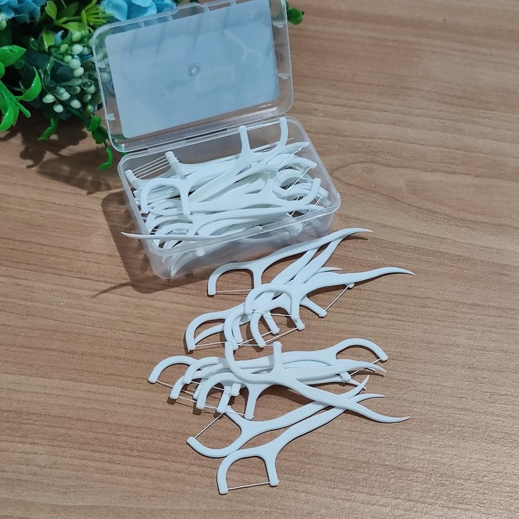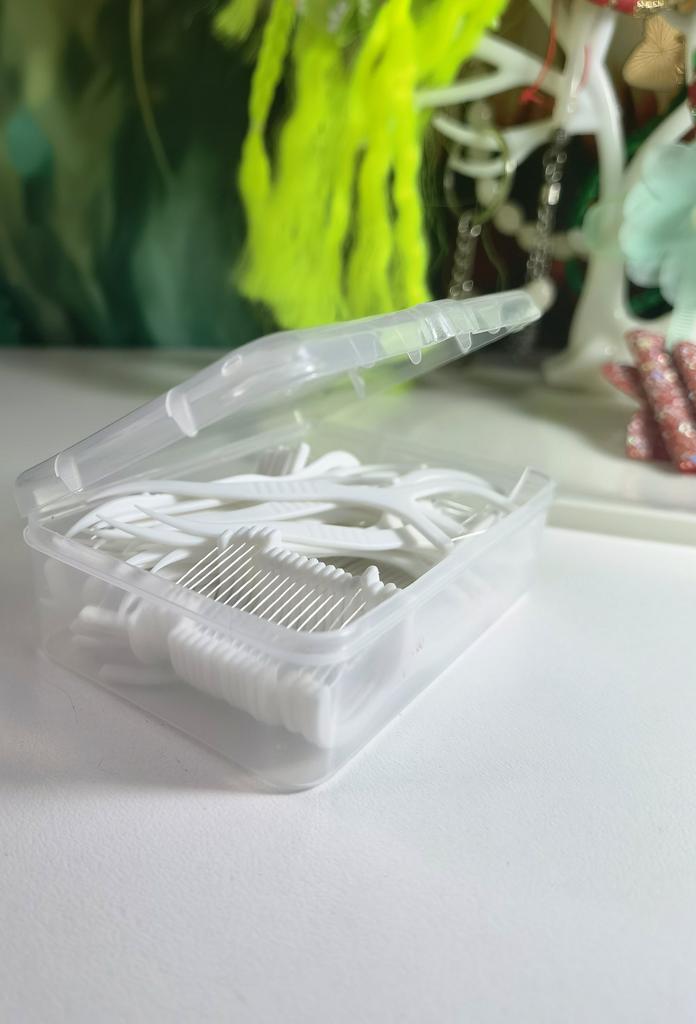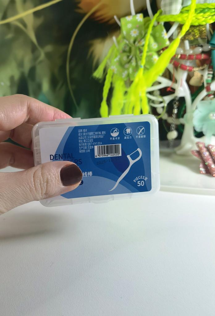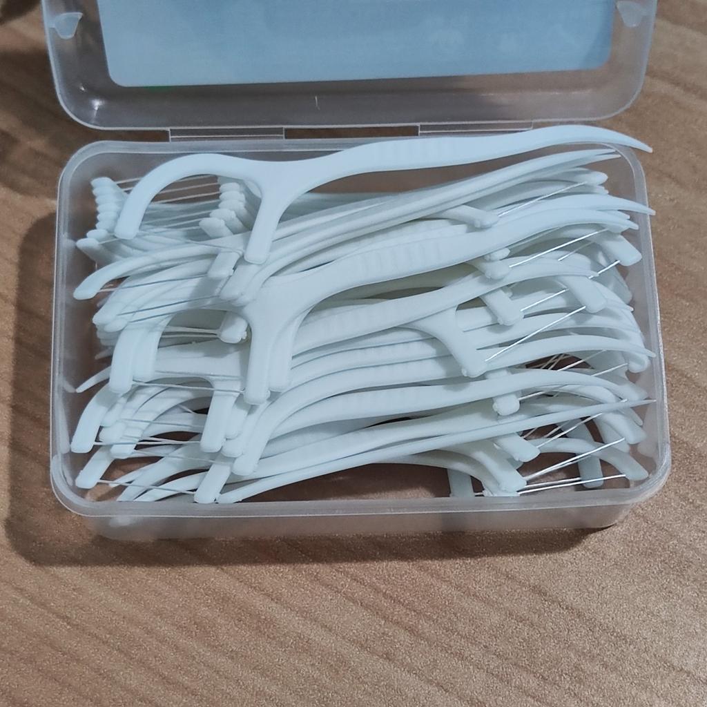 Zahnseide in Form von Zahnstochern Praktisch, hygienisch Kann überallhin mitgenommen werden Packung mit 50 Stück Einfach zu benutzen, alles ist in Ordnung, alles funktioniert 👌