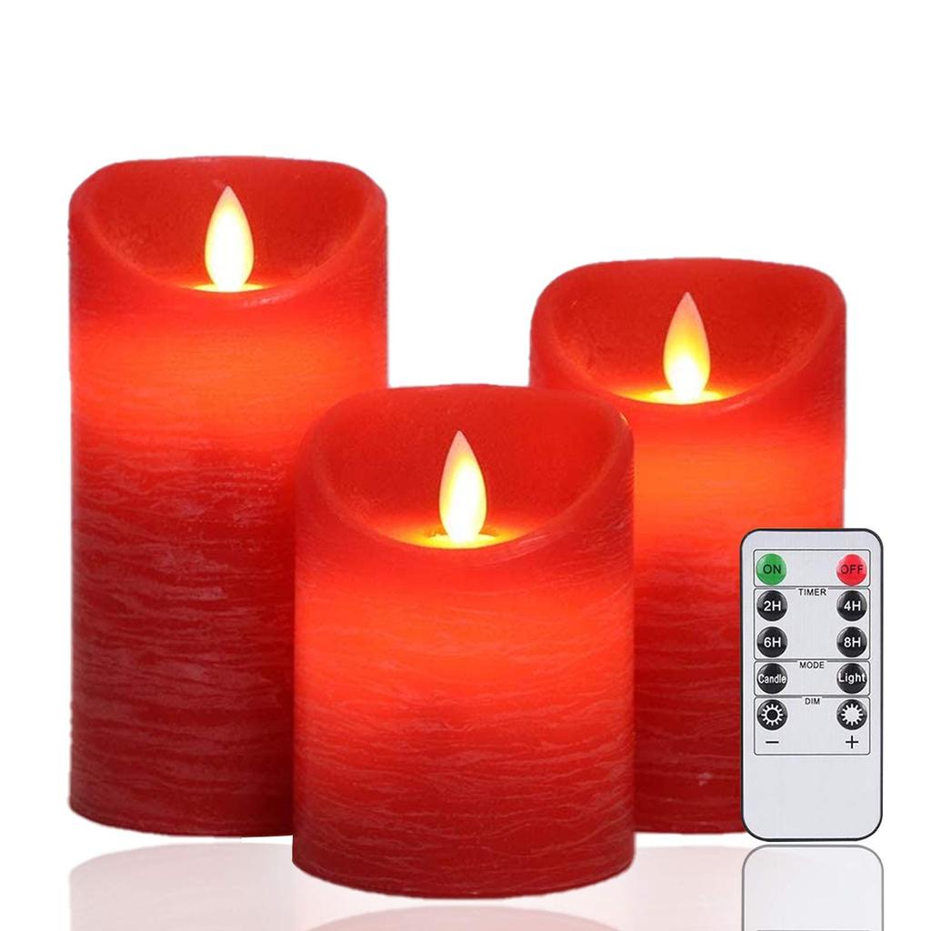 AnnTec LED Candle Light, Red, 3-Piece Set, Flickers Like a Real Flame, Warm Light, Flameless, Safe, Energy-Saving, Includes Remote Control,
