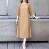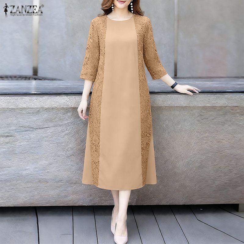 ZANZEA Women Casual Round Neck 3/4 Sleeve Casual Lace Patchwork Dress