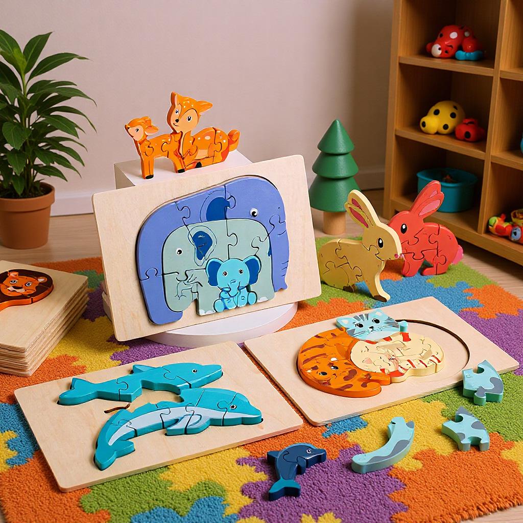 1 Stück Holz Kinder 3D Tier Puzzle Set, Handheld Lernbausteine, Lernspielzeug