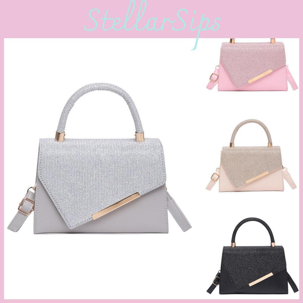 Chic Design: This modern mid-sized handbag features a trendy square shape and is available in a range of fashionable colors including black, pink, gold, and silver, making it a perfect accessory for any occasion.