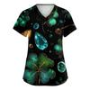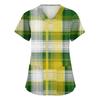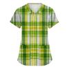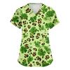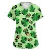 Damen St. Patrick Print Modischer V-Ausschnitt Tasche Kurzarm Uniform und Pflegeoberteil