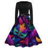 Damen Casual Mode Rundhals Karneval Bedrucktes Vintage Kleid