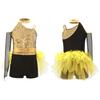 Mädchen Jazz Tanzkostüm Glitzerndes Paillettenoberteil mit Feder-Tüllrock Asymmetrischer Colorblock Jumpsuit für Bühnenauftritt