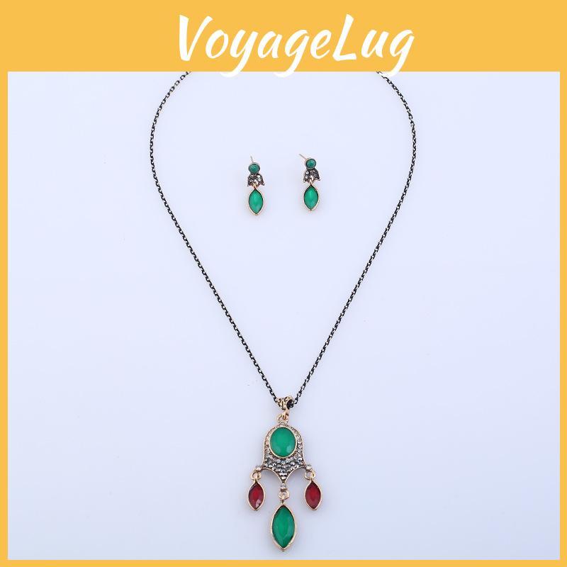 Dieses Vintage-Legierungsanhänger-Halsketten- und Ohrringset zeichnet sich durch ein geometrisches Design mit grünem und schwarzem Harz aus und vereint Stil und Langlebigkeit.. Aus Legierung mit Galvanisierung, Perfekt für den Alltag oder zum Verschenken, es passt sowohl Männern als auch Frauen.. Benutzer können die Oberfläche zur Pflege vorsichtig mit einem weichen Tuch abwischen.