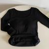 T-Shirt im koreanischen Stil, Slim Fit, quadratischer Ausschnitt, gebürsteter Samt, mit Brustpolstern für Herbst und Winter