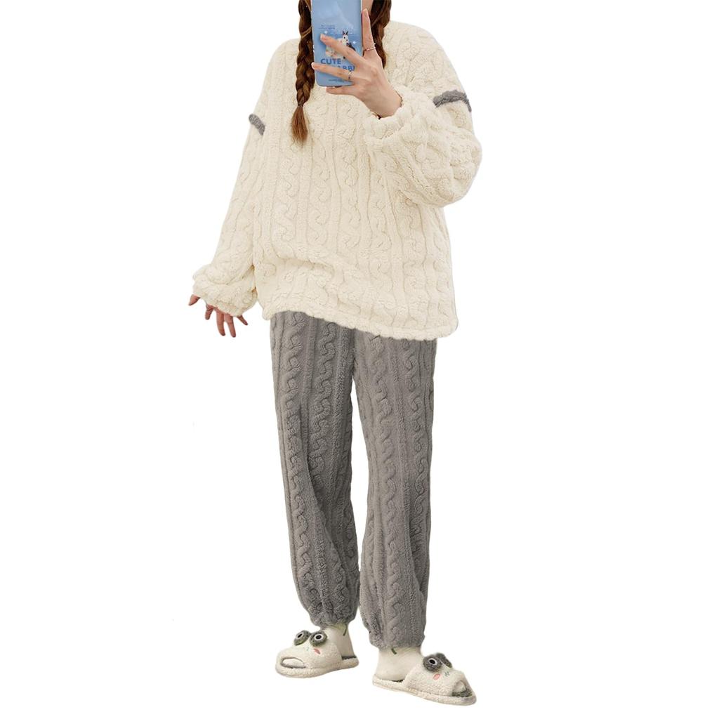 [Enjoy Comfort and Skin-Friendly Feelings] As soon as you put on these pajamas, you'll immediately feel their fluffy, soft texture. The delicate, skin-friendly fabric is comfortable even for sensitive skin. It's like a second skin, bringing you an unparalleled comfort experience. Whether you're sitting and reading a book or lying down for a rest, you'll feel the warmth and comfort of their fluffy fabric.