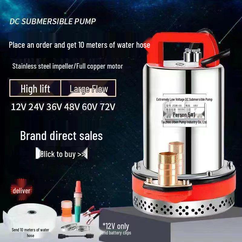 DC Submersible Water Pump for Vegetables and Farming, Compatible with 12V-60V Battery or Electric Vehicle