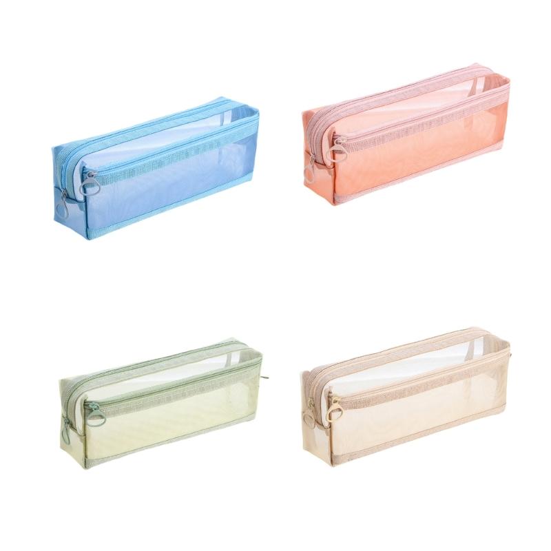 Clear Mesh Pencil Case Double Layer Pencil Pouches Large Capacity Pen Organizers Storage Bag Portable Makeup Storage Bag