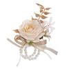 Luxurious Artificial Flower Bride Wrist Flower Chest Corsage With Golden Foliage Design Wedding Party Wrist Jewelry