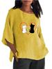 Damenmode O-Ausschnitt 3/4 Langarmshirt Frühling&Sommer Druck Baumwolle Leinen Bluse