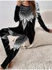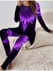 Euro-amerikanische Mode 3D Abstrakt bedrucktes Damen Vier-Jahreszeiten Langarm T-Shirt + Lange Hose Zweiteiliges Set. Perfektes Geschenk für Neujahr & Weihnachten