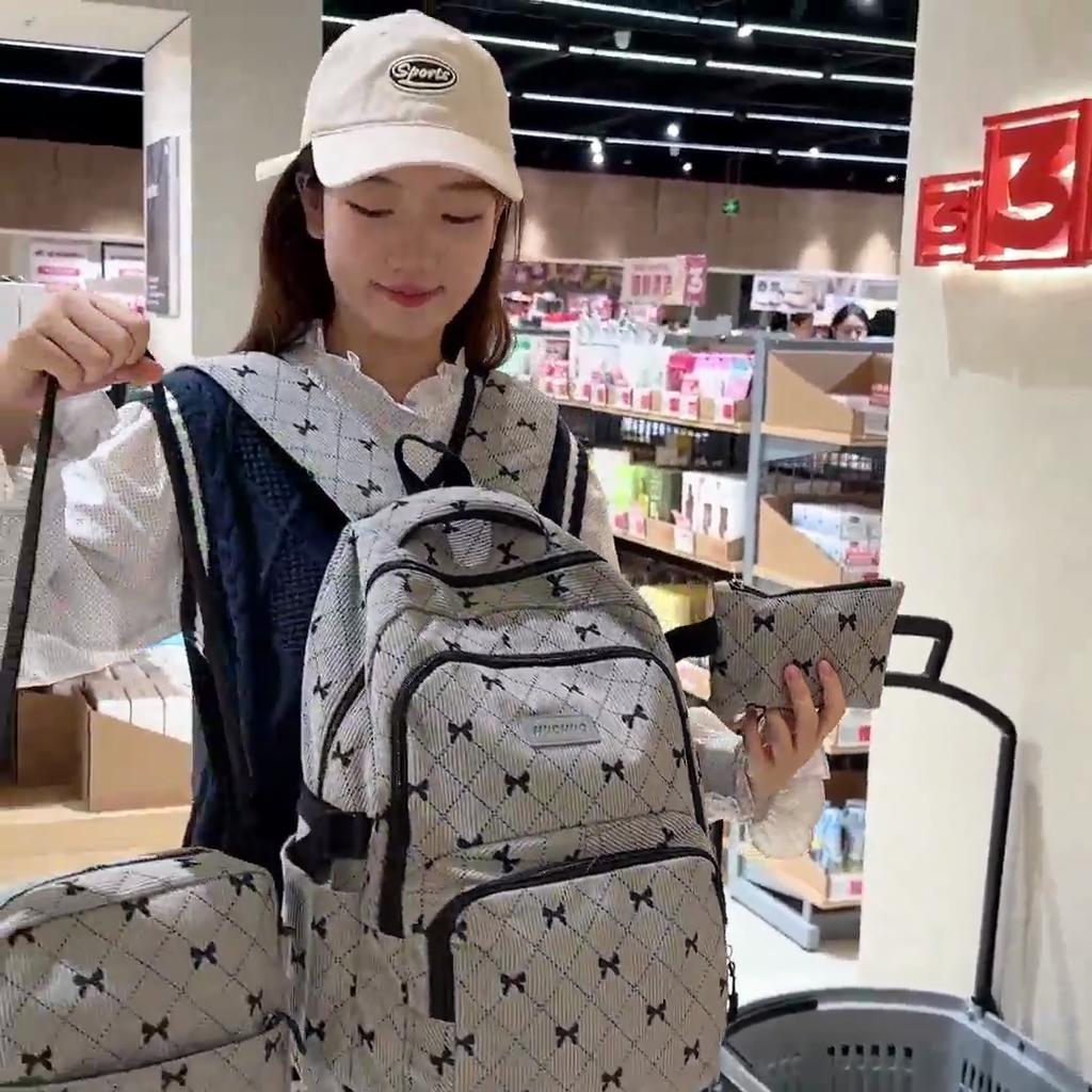 Dreiteiliger Schleifen-Rucksack Cord-Rucksack Schülerschultasche