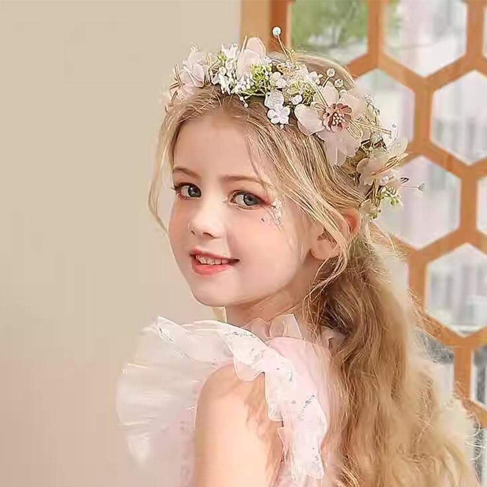 Elegant Women's Flower Crown Pink Butterfly Flower Hair Hoop For Girls Ladies Hand Woven Luxury Metal Jewelry Hair Accessories