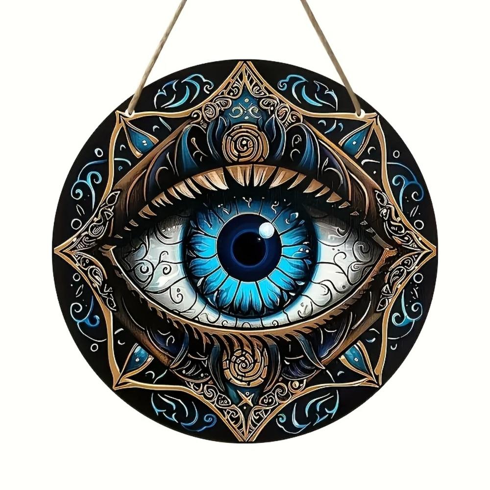 1 Stück, "Böhmischer Stil Schutz vor dem bösen Blick Musterdesign" runder Holzdekorationsanhänger, Holzanhänger, Tür und Fenster